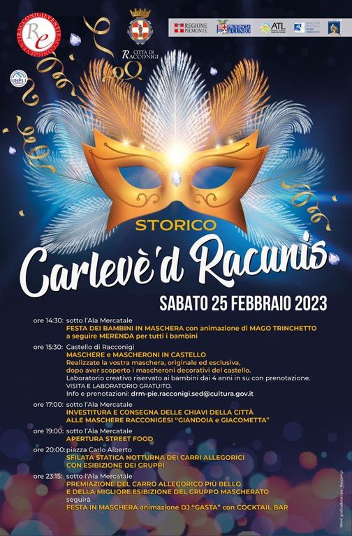 Nella giornata di sabato 25 febbraio, a partire dalle ore 14:30, a Racconigi è in programma la tradizionale festa di Carnevale, con eventi per grandi e piccini.