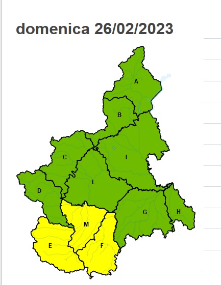 Nello specifico Arpa segnala che da domani mattina (domenica 26 febbraio), sono previste “precipitazioni su tutta la regione Piemonte, più intense sul settore sudoccidentale con quota neve in calo fino a 100-200 metri domani sera.