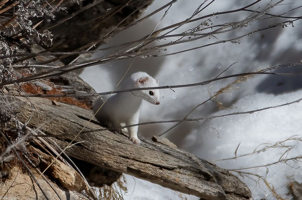 Nello scatto del fotoamatore Enrico Ruggeri, l’animaletto sembra mettersi in posa, in guisa del famoso dipinto di Leonardo “Dama con l’ermellino”, per mostrarci tutta la sua bellezza e dolcezza.