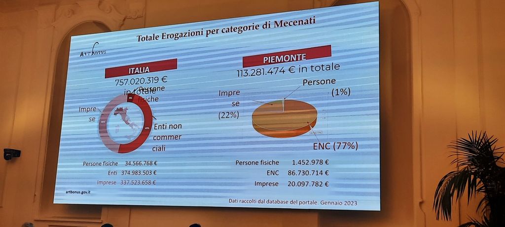 In Piemonte (al secondo posto in Italia dopo la Lombardia) sono stati superati i 113 milioni di erogazioni liberali, 2.300 i mecenati, 317 enti beneficiari (198 Comuni, 19 altri enti pubblici, 36 concessionari, 10MiC+ 54 enti dello spettacolo); 750 interventi con 314 raccolte chiuse.