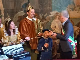 4 marzo 1922 - 5 marzo 2023: oltre cent’anni di una tradizione che da sempre raduna persone di tutte le età. Alle ore 11, in Comune, l’ufficiale investitura delle maschere e la tradizionale consegna delle chiavi della città da parte del sindaco Mauro Astesano. Da parte sua i complimenti a tutto il gruppo del Carnevale, per l’impegno e per l’allegria che già nelle settimane precedenti ha portato per le vie di Dronero, presso le scuole e le case di riposo. Un momento solenne e davvero molto emozionante, seguito da gioiosi canti della tradizione. Presente, oltre al sindaco, anche il vicesindaco Mauro Arnaudo, che si è molto impegnato per la riuscita dell’evento.
