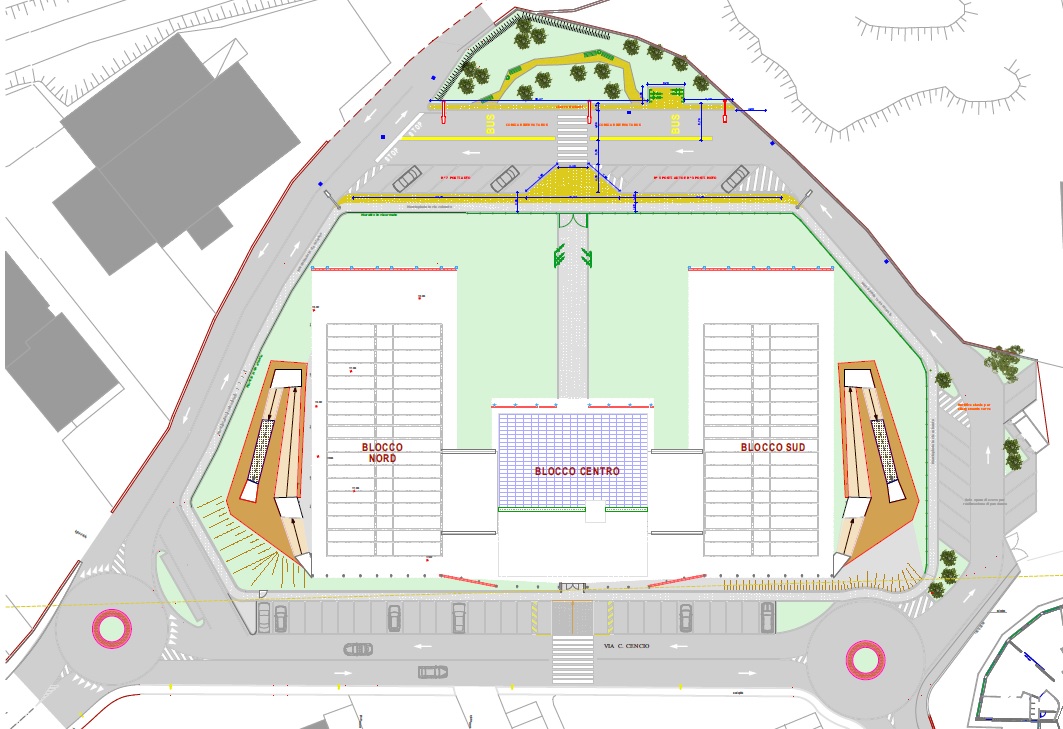 Il progetto prevede il miglioramento dell’area retrostante, la scuola con la finalità di alleggerire e migliorare la logistica in modo da decongestionare via Cencio.
