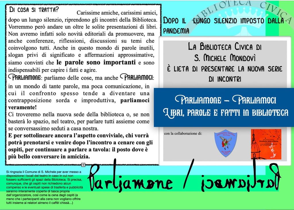 Dopo un lungo silenzio legato principalmente alla pandemia, riprendono gli incontri della Biblioteca Civica di San Michele Mondovì intitolati “Parliamone-Parliamoci".