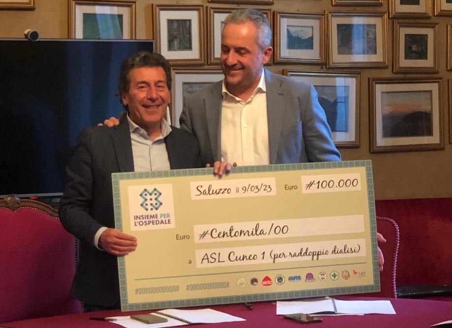 100 mila euro è la grande somma donata per il potenziamento della Dialisi di Saluzzo, raccolta attraverso la campagna “Insieme per l’Ospedale” da una squadra di dieci associazioni di volontariato e gruppi locali: Officina delle idee, Ana Saluzzo, Croce verde, Artiglieri dell’Aosta, Avis, Lilt, Tribunale del malato, Adas, Aido e il Fiore della vita.