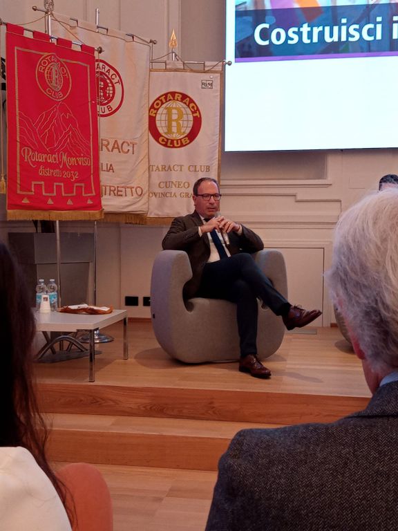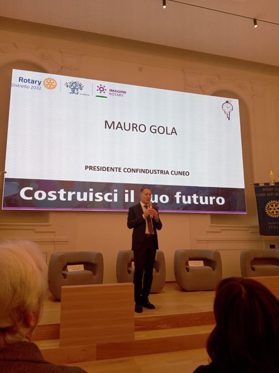 Dopo l'introduzione all'evento a cura della direttrice di Confindustria, Giuliana Cirio, moderatrice, sono seguiti i saluti istituzionali di Mauro Gola, presidente di Confindustria Cuneo; Patrizia Manassero, sindaco della città di Cuneo; Patricia Indemini, presidente del Rotary club Cuneo; Angelo Pellegrino, presidente del Rotary Club Alpi del Mare; Maurizio Foglino, presidente sub- Commissione Giovani e Lavoro.