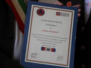 "Un gesto per dire grazie - ha detto il sindaco di Mondovì, Luca Robaldo, dopo aver proiettato il messaggio del presidente della Regione Piemonte, Alberto Cirio - per tutto l’impegno che avete messo in campo sacrificando il vostro tempo libero per mettervi a disposizione della comunità. La giornata di oggi, 18 marzo, è una data che non abbiamo scelto a caso. La cerimonia volevamo fosse oggi perché ricorre la giornata in memoria delle vittime della pandemia. Un pensiero e un grazie lo rivolgiamo anche all'ex sindaco Paolo Adriano per tutte le energie spese nel corso del suo mandato per affrontare le difficoltà dell'emergenza pandemica. Guardiamo al passato per ricordare ciò che è stato, un momento necessario e doveroso".
