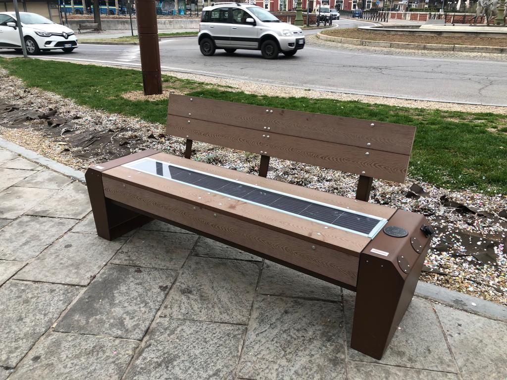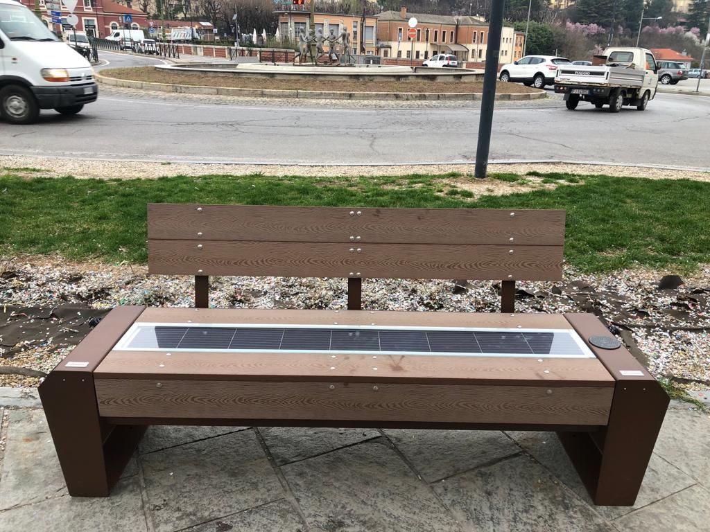 Si tratta di tre panchine dotate di pannello solare, centralina elettronica per la gestione dell'energia, quattro porte usb per ricarica dispositivi elettronici e illuminazione led. Il costo è di circa 4 mila euro l'una.