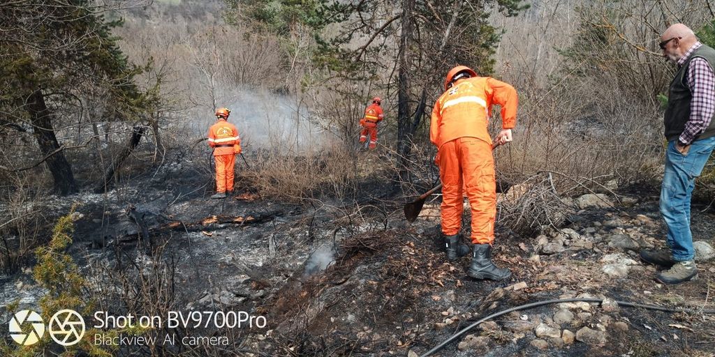 È in corso la bonifica dell'incendio boschivo in località Forani di Aisone.