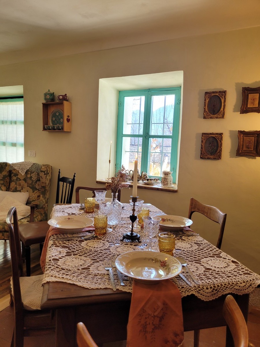 In una piccola casa dalle finestre azzurre, baciata dal sole, circondata da vecchi caseggiati in pietra e prati fioriti si trova il piccolo mondo della Cuciniera. La sensazione di entrare in un regno di cristallo, intimo e delicato svanisce quando lei ti accoglie e, con il suo sorriso, ti avvolge.