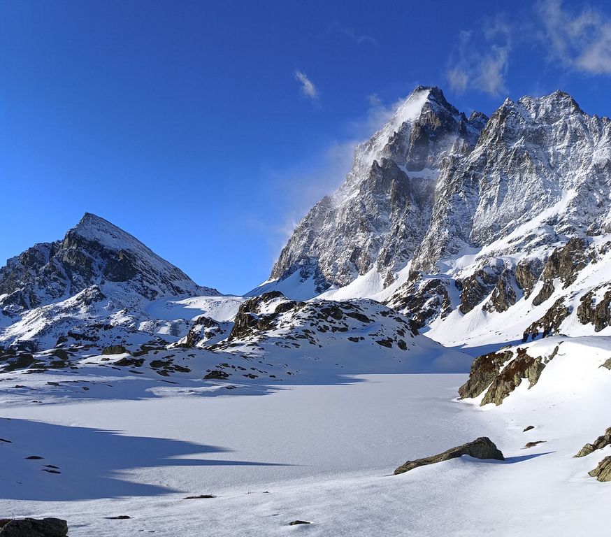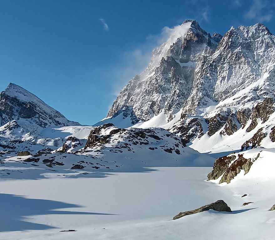 Il momento del distacco della valanga nel canalone Coolidge sul Monviso