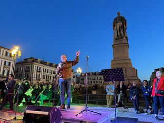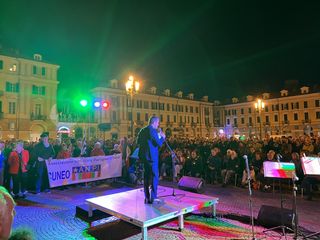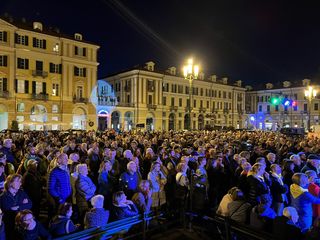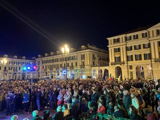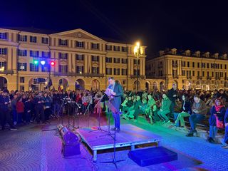 Erano in migliaia stasera 24 aprile in piazza Galimberti a Cuneo, dove si è svolta la tradizionale Fiaccolata della Resistenza.