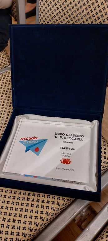 Menzione dìonore per la terza A del liceo classico "Beccaria" di Mondovì". Gli studenti hanno ricevuto il riconoscimento all'interno del progetto "A Scuola di Dono" organizzato dalla FIDAS Nazionale.