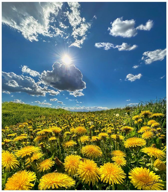 Illuminano i nostri prati come le stelle del cielo notturno. Lo scatto del fotografo braidese Tino Gerbaldo che ha conquistato il web è tutto per il dente di leone, più noto come soffione. Centinaia sono in piena fioritura nelle campagne braidesi, regalando uno spettacolo mozzafiato. Il particolare nome dente di leone è dato dalla forma dentata delle sue foglie. Il nome soffione, invece, proviene dalla palla lanuginosa contenente i suoi semi.