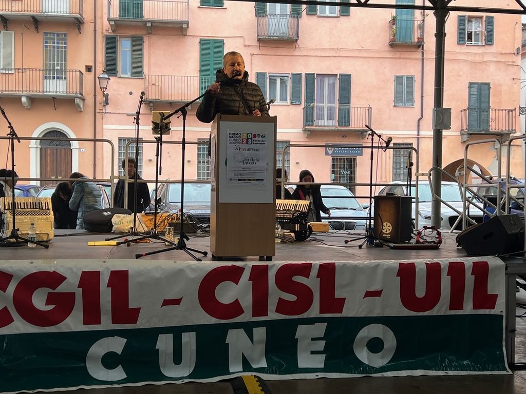 Enrica Giordano, a nome dell'Anpi provinciale, ha sottolineato come il lavoro sia il fondamento della nostra Repubblica. Un lavoro al quale va restituita la dignità e per il quale inizierà una mobilitazione condivisa in tutte le piazze. Cgil, Cisle Uil insieme, come oggi, a Cuneo, dove sono intervenuti i tre segretari provinciali.