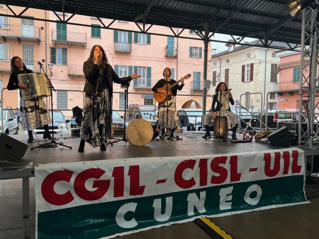 Prima della loro esibizione c'è stato il momento degli interventi, aperti dalla sindaca di Cuneo Patrizia Manassero, che ha ricordato come il 1° Maggio sia la più importante festa del nostro calendario civile. Ha rivendicato con orgoglio le parole del presidente Mattarella, che ha definito Cuneo la "città della Costituzione".
