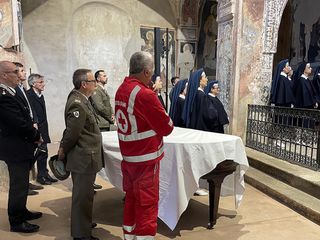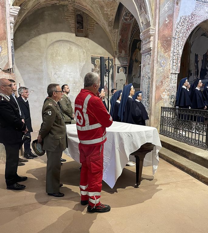 Alla messa solenne nella celebrata nella Chiesa di Santa Caterina a Villanova Mondovì dal cappellano militare monsignor Dionigi Dhò hanno presenziato molte autorità, i presidenti della Croce Rossa Italiana di Cuneo Gianni Enzo Valsania, di Mondovì Maria Consolina Turco, l’ispettrice territoriale delle II.VV. di Cuneo Sorella Maria Maccagno, la vice Ispettrice territoriale delle II.VV. di Alba Sorella Rosanna Poppa assieme a una folta rappresentanza delle istituzioni civili e militari. A ricevere i partecipanti alla celebrazione, le Sorelle dell’Ispettorato di Mondovì, con l’ispettrice Sorella Anna Maria Scarciglia.