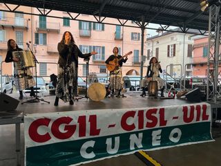 Prima della loro esibizione c'è stato il momento degli interventi, aperti dalla sindaca di Cuneo Patrizia Manassero, che ha ricordato come il 1° Maggio sia la più importante festa del nostro calendario civile. Ha rivendicato con orgoglio le parole del presidente Mattarella, che ha definito Cuneo la "città della Costituzione".