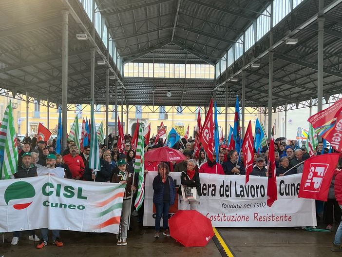 Enrica Giordano, a nome dell'Anpi provinciale, ha sottolineato come il lavoro sia il fondamento della nostra Repubblica. Un lavoro al quale va restituita la dignità e per il quale inizierà una mobilitazione condivisa in tutte le piazze. Cgil, Cisle Uil insieme, come oggi, a Cuneo, dove sono intervenuti i tre segretari provinciali.