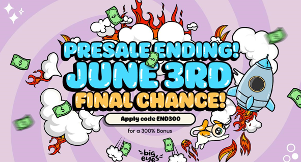 Big Eyes Coin (BIG) terminerà la sua prevendita il 3 giugno, dopo aver raccolto più di 34 milioni di dollari. I creatori della moneta si stanno adoperando per garantirne il trionfo nell'instabile mercato delle criptovalute creando una base solida, destinando il 5% dell'offerta totale a cause benefiche e presentando un bonus del 300% sui gettoni extra per chi acquista ora con il codice END300.