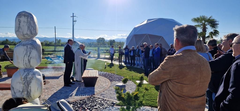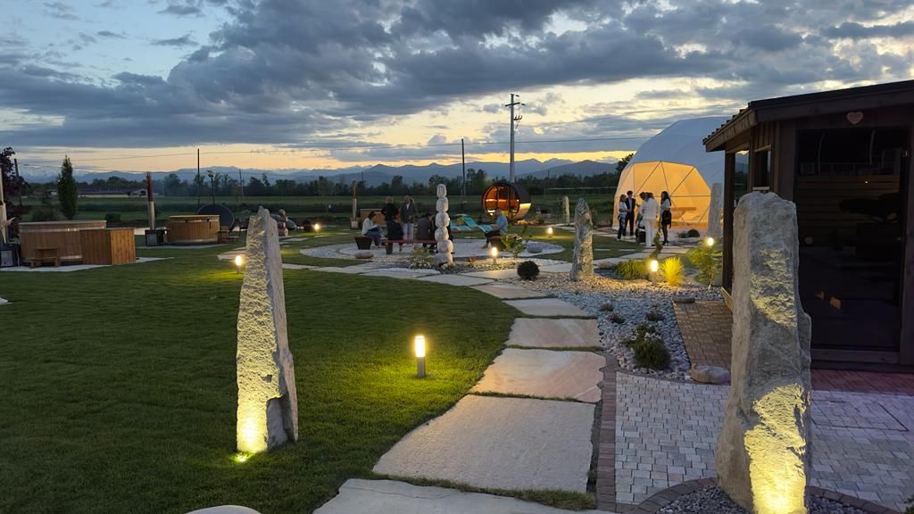 Offrendo un’esperienza sensoriale e rilassante unica, fra giardini zen, dolmen, laghetti, saune, bagni, geodetica. Un vero e proprio tempio della positività e del rituale del sé, prima sognato, poi pensato e studiato nei minimi particolari, quindi realizzato a regola d’arte, dal genio creativo di Bruno Alesso, un imprenditore “illuminato”, con la “I” maiuscola, capace e caparbio, che possiede il talento, più unico che raro, di avere la “visione” di progetti lungimiranti e innovativi, che non restano mai nel cassetto, ma vengono sempre avviati e portati a termine, perché quando l’istinto gli dice di farlo, non ci pensa due volte e lo fa.