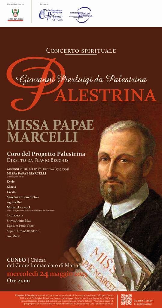 Mercoledì 24 maggio alle ore 21 presso la chiesa del Cuore Immacolato di Maria si svolgerà un concerto spirituale dove verrà eseguita la celeberrima Missa Papae Marcelli di Giovanni Pierluigi da Palestrina, compositore dell’area romana considerato tra i massimi autori dell’età rinascimentale e a lungo venerato come modello ideale per la composizione polifonica sacra.