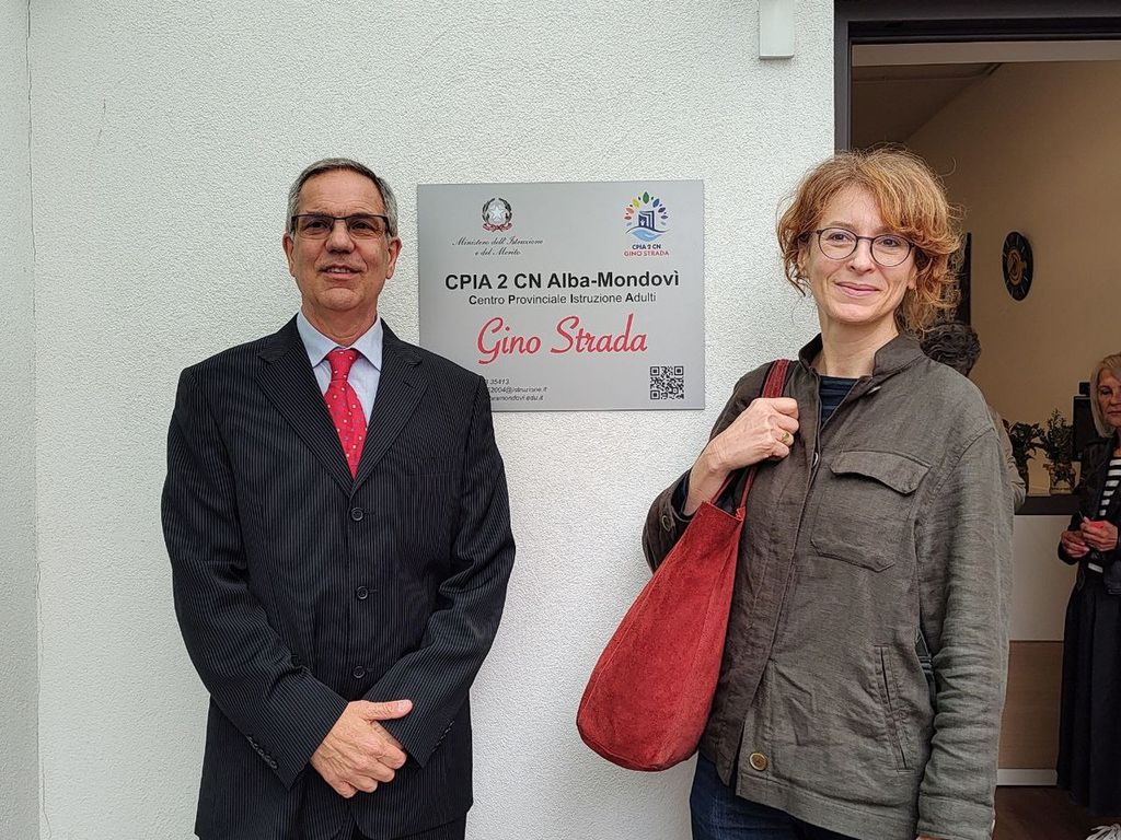 Questa mattina, mercoledì 17 maggio, la sede albese del Centro Provinciale per l’Istruzione degli Adulti è stata ufficialmente intitolata alla memoria di Gino Strada, chirurgo, attivista e scrittore scomparso il 13 agosto 2021. Nell’occasione è stato annunciato il gemellaggio del CPIA Alba-Bra-Mondovì con il CPIA della provincia Barletta-Andria-Trani “Gino Strada”.