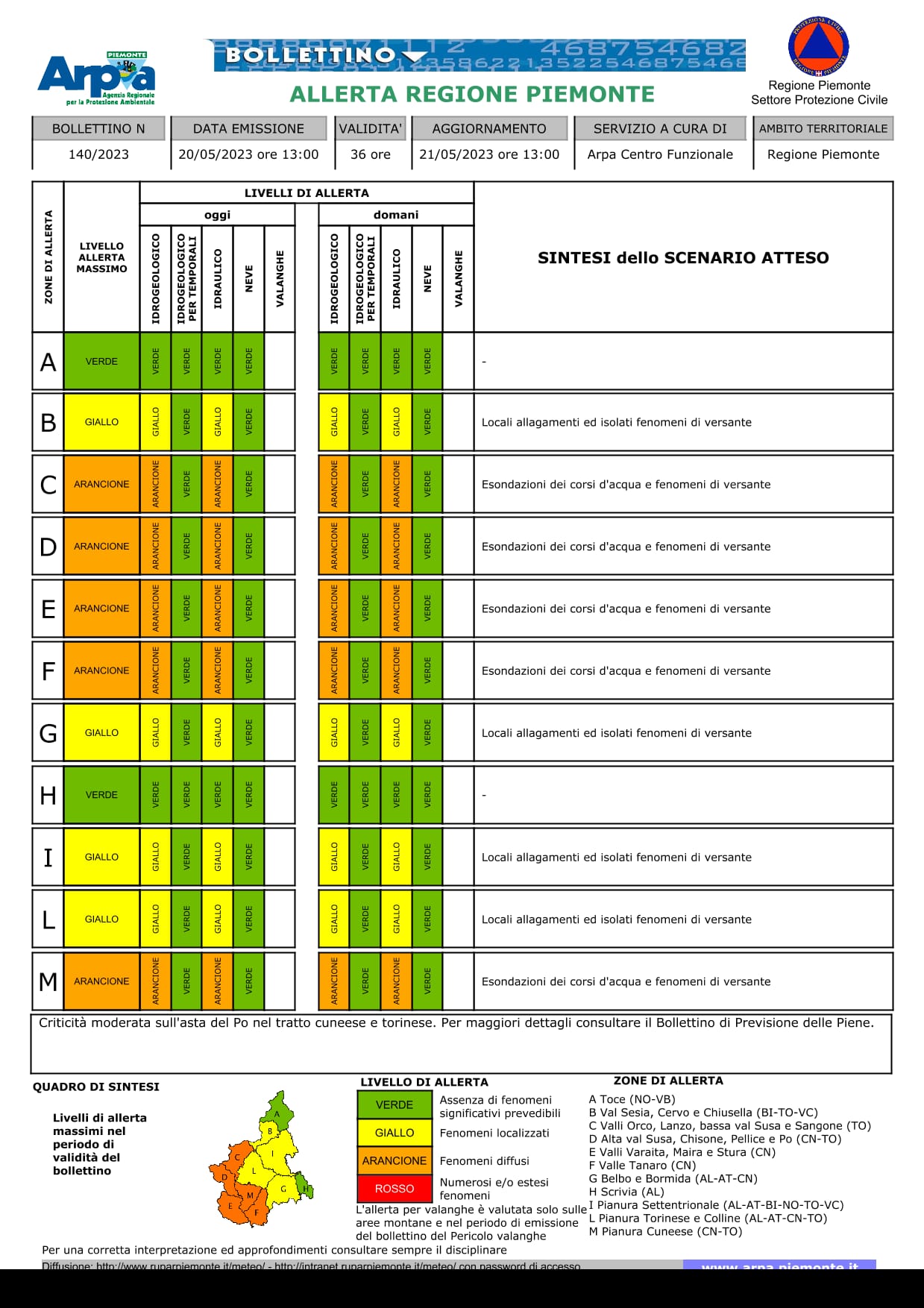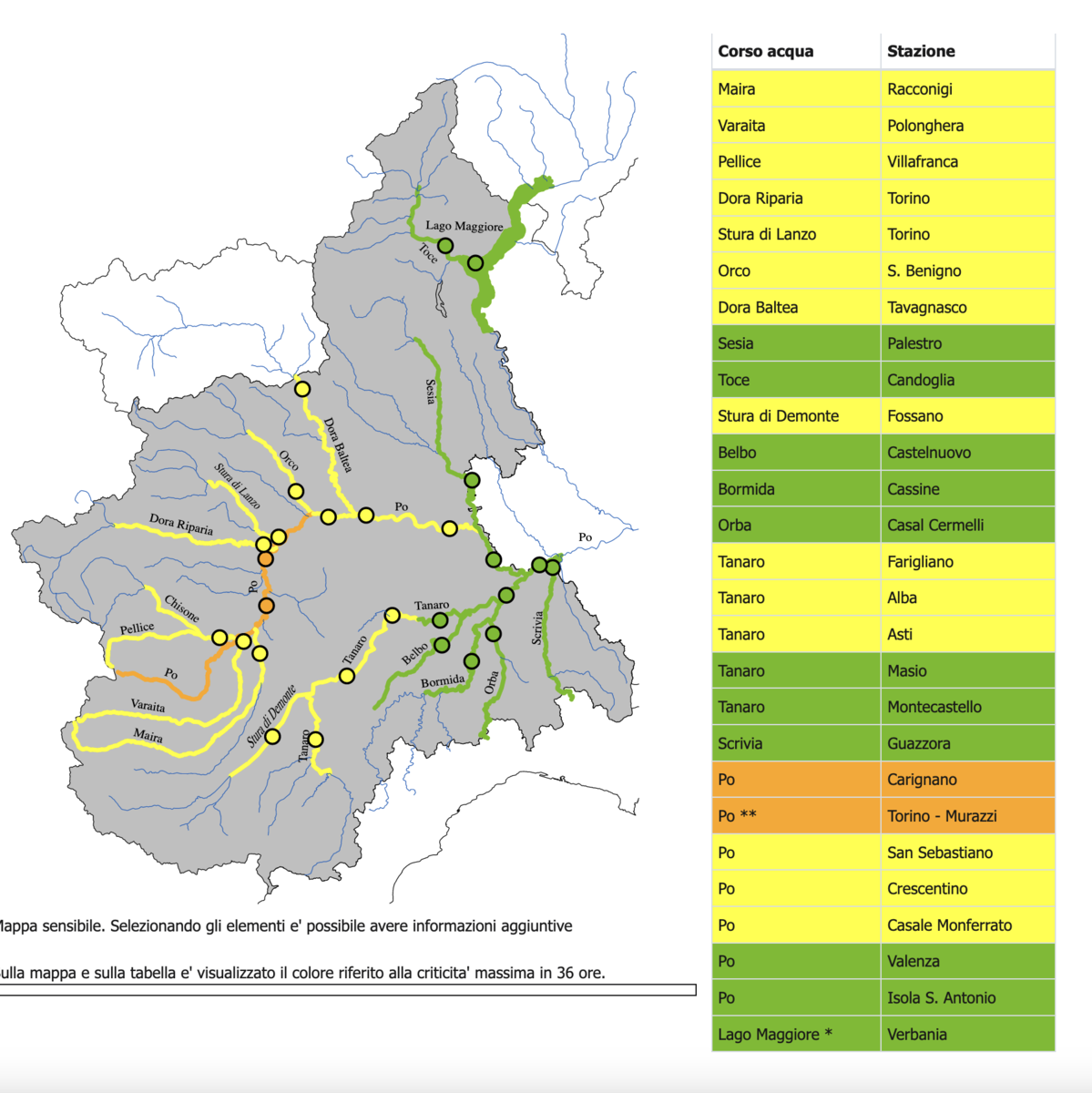 Sulle zone del cuneese e torinese occidentali è stata emessa allerta arancione per allagamenti, innalzamento dei corsi d’acqua e diffuse frane superficiali anche la giornata di domani 21 maggio.