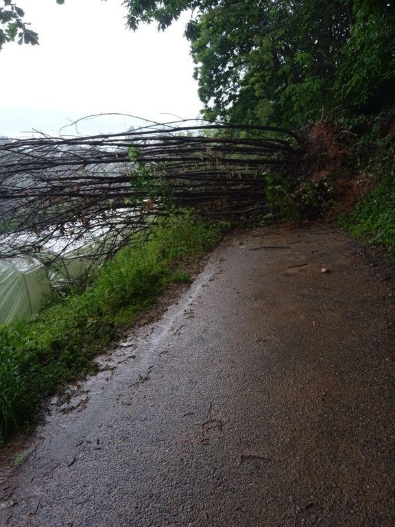 Saluzzo, collina, il prima e dopo della strada comunale che va a Pilone Botta. Una piccoal frana ha bloccato la via. Dopo l'intervento della squadra comunale è stata riaperta