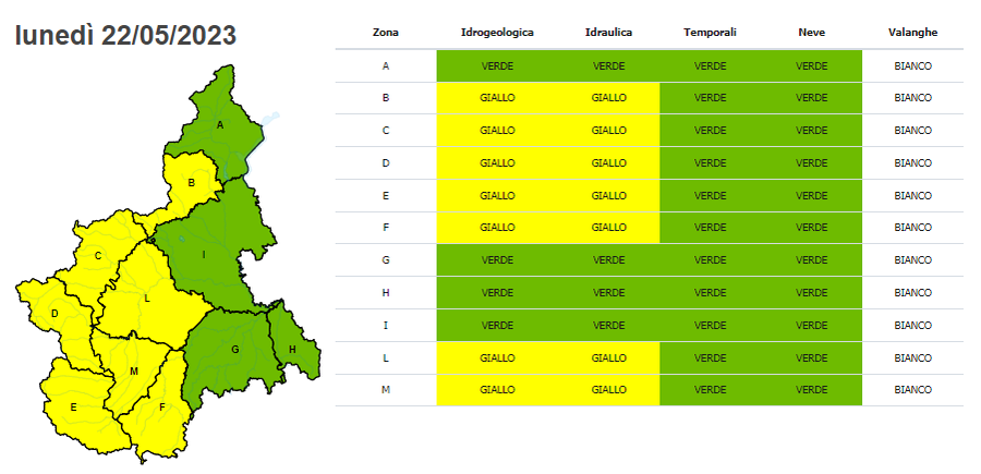 Per la giornata di oggi Arpa prevede "al mattino parzialmente nuvoloso, con addensamenti più consistenti sulle Alpi e sul settore meridionale; poco nuvoloso nel pomeriggio con cumuli in formazione sui rilievi. Rovesci o temporali sparsi sui rilievi, in possibile transito sulle pianure; valori moderati sul Cuneese al mattino".