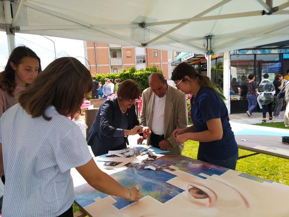 Qui, oltre ad allestire l’opera d’arte, i giovanissimi partecipanti saranno coinvolti da un laboratorio di acconciature a cura di Cnos-fap e da attività pensate per loro dal Centro famiglie. Nel pomeriggio, a partire dalle 15 e fino alle 18, i giovani del gruppo “Minds” (età 15-30 anni) invitano il pubblico a visitare il percorso-mostra “MostrArti” da loro realizzato coinvolgendo giovani artisti, creativi e sperimentatori.