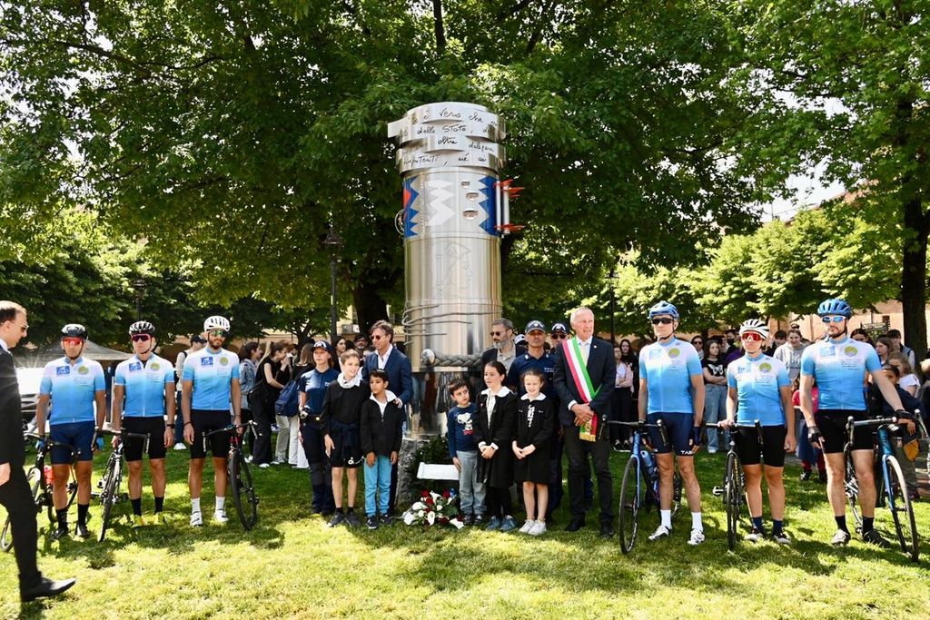 La carovana di decine di poliziotti-ciclisti, V Reparto Mobile della Polizia di Stato di Torino, partita dal capoluogo sabaudo è stata accolta in piazza Garibaldi davanti al monumento dedicato al generale nato a Saluzzo e ucciso da Cosa nostra, dove hanno posto una corona di fiori.