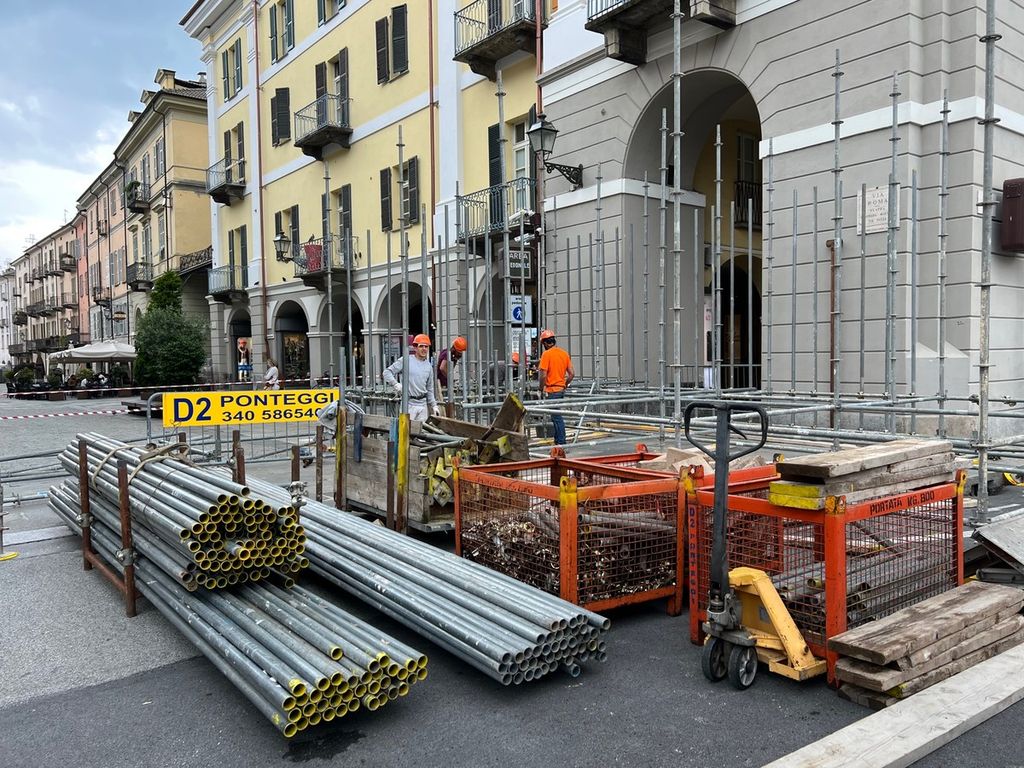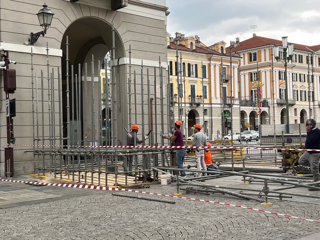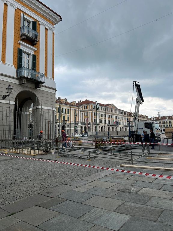 E' iniziato questa mattina l'allestimento dell'edizione 2023 dell'Illuminata a Cuneo, dove si sta approntando il sistema che farà da contrappeso al portale di luci, all'inizio di via Roma verso piazza Galimberti. Una struttura di 18 metri di altezza che sarà in sicurezza, non potendo venire ancorata ai muri, grazie ai contrappesi da 30 tonnellate per lato.