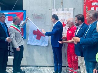 Con la cerimonia della posa della prima pietra è stata scoperta anche la targa descrittiva dei finanziamenti ricevuti dalla Croce Rossa, dalla Regione e dal Comune.