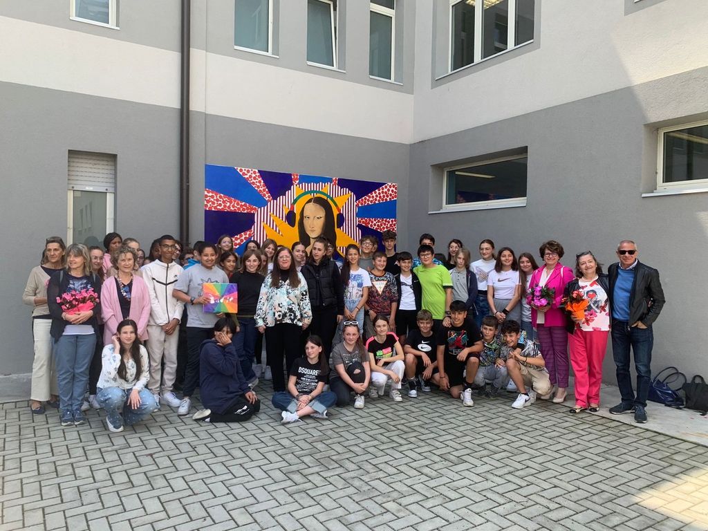 Da questa mattina un murale sul tema “Arti e musica” fa capolino nel cortile della scuola media Sebastiano Grandis di Borgo San Dalmazzo. Lo hanno realizzato una quarantina di ragazzi di seconda guidati dall'artista Monica Sepe. L'inaugurazione alla presenza della sindaca Roberta Robbione con gli assessori Michela Galvagno e Francesco Rosato e della dirigente Luciana Ortu.