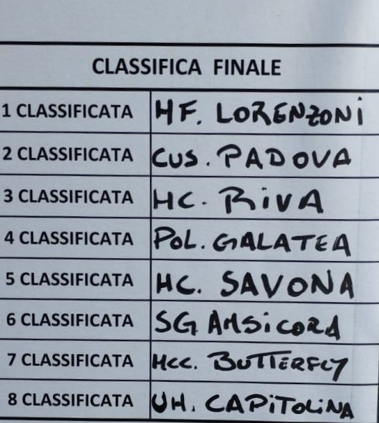 Meritato tricolore di categoria ottenuto grazie al grande impegno di tutte ma guidate dalle più esperte Bianca Durio, Aurora Raciti e soprattutto da Simona Lanzano premiata alla fine quale migliore giocatrice del torneo e maggiore realizzatrice.