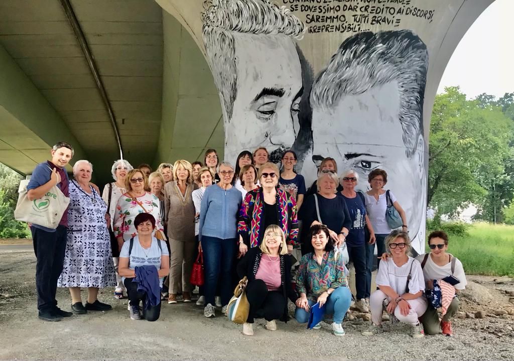 Un pomeriggio all’insegna dell’amicizia e dell’arte per l’associazione Donne per la Granda. La presidente Giovanna Tealdi ed un nutrito gruppo di socie si sono date appuntamento a Bra domenica 18 giugno per visitare i piloni artistici in strada Crosassa.