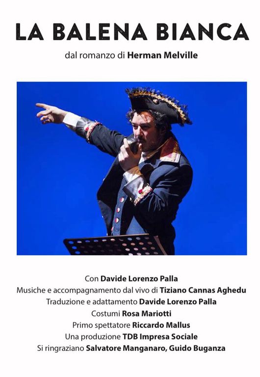 Perchè anche quando il mare è avverso e il vento continua a gridarci in faccia la nostra triste e disperata disfatta, noi veleggiamo alla ricerca della nostra utopia.Davide Lorenzo Palla si tuffa nella rilettura di un testo non teatrale e caposaldo della letteratura moderna: Moby Dick di Herman Melville.