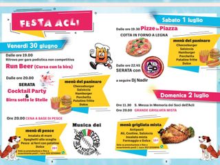 Dalle 19.30 di sabato 1 luglio, invece, si terrà l’evento ‘Pizze in piazza’ (accompagnato ancora dal menù del paninaro); dalle 22.45 serata con la ABCD Band e, a seguire, il dj set di Dj Nadir.