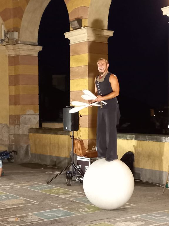 Sfrenata energia: una miscela di virtuosismi fatta di giocoleria con cerchi, palline e clave, equilibrio su sfera e pennellate di commedia dell’arte. A Dronero, sotto l’ala del teatro, venerdì sera, 30 giugno, sono andate scena “La Corda”, le spettacolari esibizioni di Sandro Sassi, Mr Gera, con il suo Gera Circus che ha lasciato tutti senza fiato.