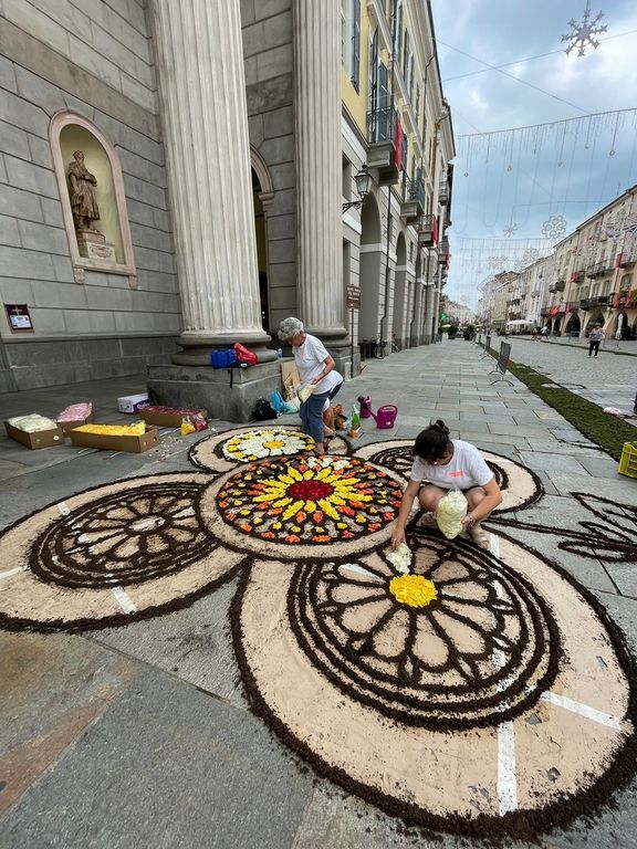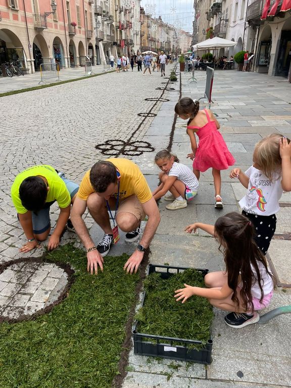 Un grande successo il ritorno dell’Infiorata a Cuneo: a partire dalle 14 di oggi (sabato 15 luglio) i tanti presenti in città hanno potuto assistere – e collaborare – alla realizzazione di stupendi disegni floreali sul pavimento di contrada Mondovì e di via Roma.
