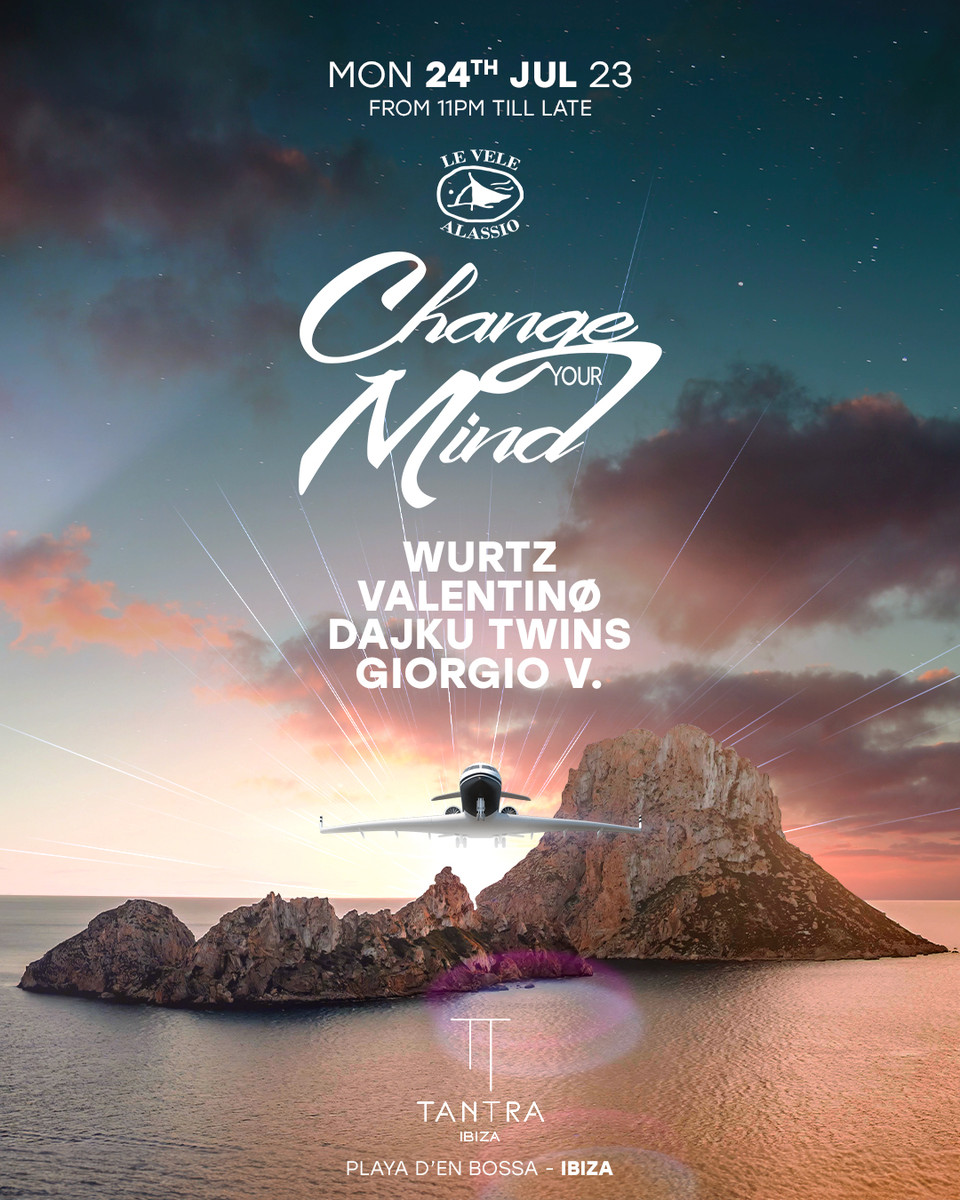 Lunedì 24 luglio per la prima volta nella storia Le Vele Alassio volano a Ibiza con il loro party Change Your Mind, dove per l'occasione suoneranno i nostri resident djs Wurtz, Valentinø, Dajku Twins e Giorgio V. Il club selezionato per questo speciale evento è il Tantra Ibiza, una nuova location esclusiva situata proprio nel cuore della movida Ibizenca in Playa d'en Bossa. Aspettiamo tutti coloro che saranno ad Ibiza in questa data per festeggiare insieme questo nuovo inizio!