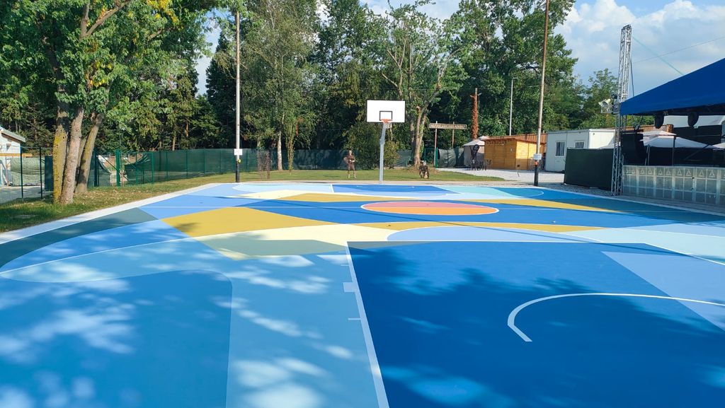 Al centro dello spazio verde in via Parco della Gioventù ha preso vita un’area di gioco regolamentare che si trasforma in una sorta di piattaforma “videogioco”, colorata, caleidoscopica e immersiva per le attività sportive ma anche area concerti e sito di aggregazione giovanile. Nell’intervento di pittura pavimentale per il playground sono stati utilizzati i codici e i linguaggi tipici della linea di lavori che l’artista realizza da anni nei contesti sportivi di diverse città europee. A Cuneo è stata posta particolare attenzione al contesto peculiare in cui l’opera dal titolo Confluenze si va ad inserire: il parco Fluviale, la convergenza dei fiumi, in una geometria che racconta la morfologia del luogo e con una palette di cromie che richiamano certo i colori del NUoVO e soprattutto dell’acqua dei fiumi Stura e Gesso, protagonisti dell’ambiente che caratterizza la città.