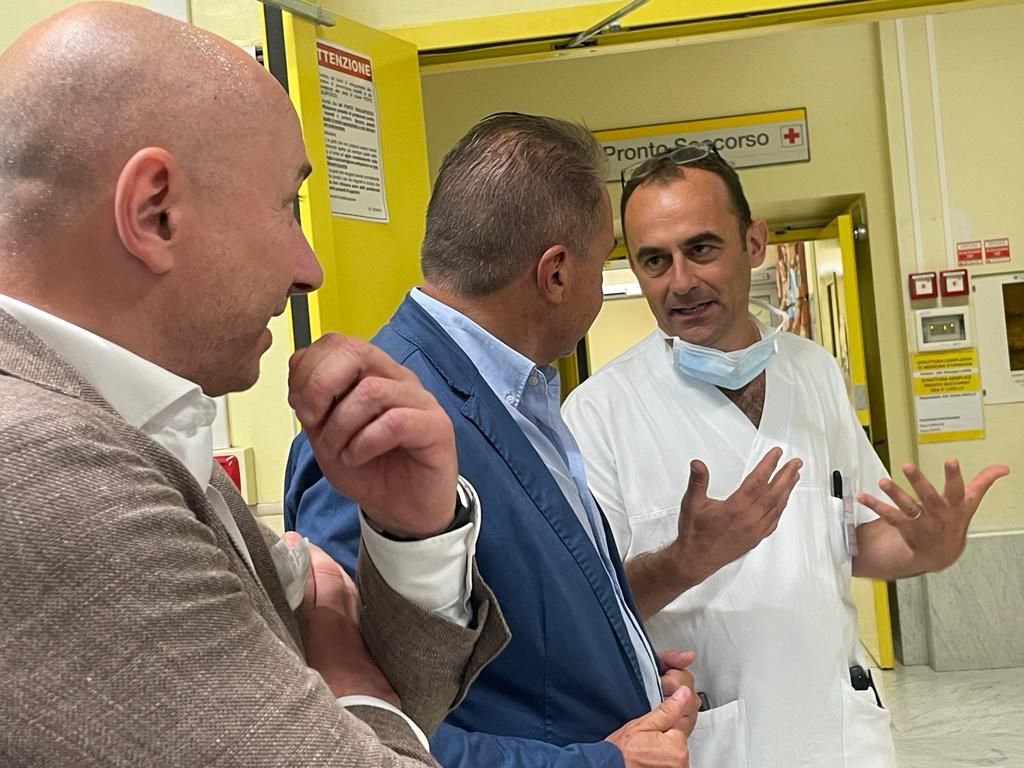Il capogruppo di Fratelli d’Italia in Consiglio regionale Paolo Bongioanni ha visitato mercoledì 19 luglio l’Azienda Ospedaliera di rilievo nazionale ad alta specializzazione Santa Croce e Carle di Cuneo, Hub di quadrante. Ad accompagnarlo i due nuovi vertici della struttura insediati da questa primavera: il commissario Livio Tranchida e il direttore sanitario Giuseppe Coletta. Bongioanni, insieme al responsabile Enti Locali di Fratelli d’Italia per la provincia di Cuneo Rocco Pulitanò, ha visitato i diversi reparti e strutture del S. Croce e Carle, dove i responsabili hanno illustrato le apparecchiature tecniche e diagnostiche a disposizione, l’organizzazione dei servizi e le prestazioni erogate.