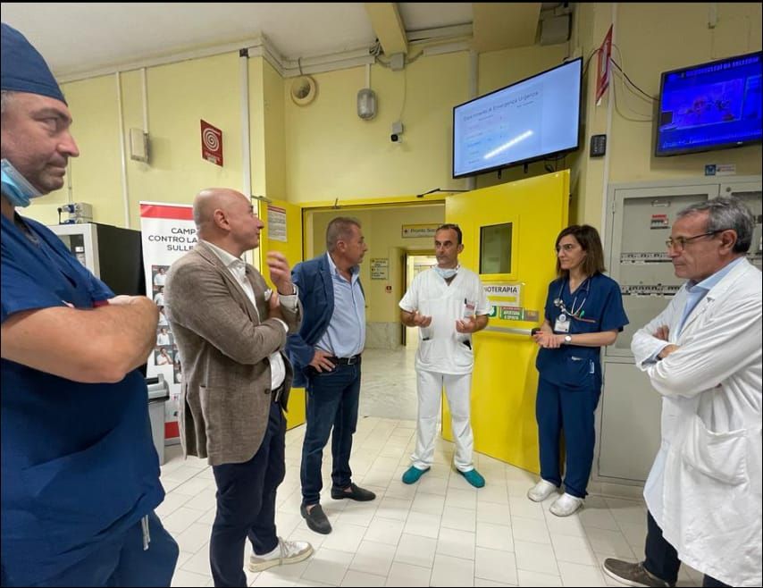 La visita ha avuto inizio dal Dea dove il coordinatore dottor Mauro Giraudo e la capo turno dottoressa Nicoletta Artana hanno illustrato i percorsi di triage di un pronto soccorso con circa 70.000 passaggi, evidenziando come a fronte di una riduzione numerica di passaggi si assiste però a un incremento di patologie più complesse.