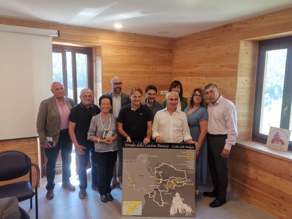 La presidente della Strada della Cucina Bianca, Emidia Lantrua, ha illustrato il territorio e i prodotti di eccellenza di questa realtà “etnogastronomica” che ha la peculiarità di basarsi su farinacei,latticini, ortaggi di montagna poco colorati, come patate, rape, porri,ecc. ,erbe e frutti spontanei raccolti sui sentieri della transumanza tra il paese ele malghe.