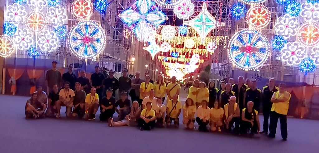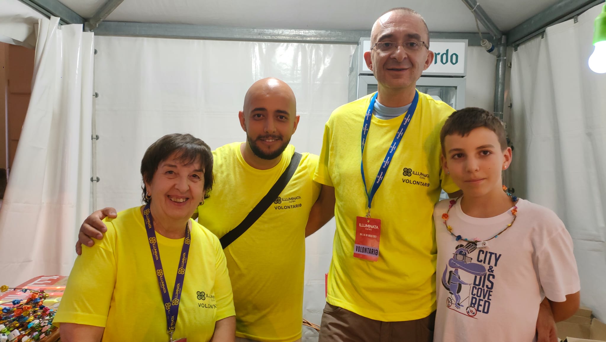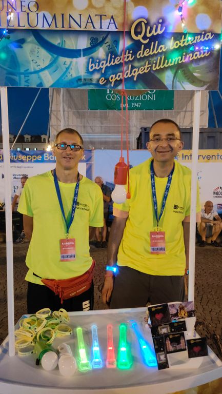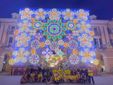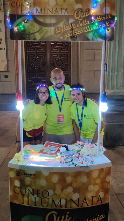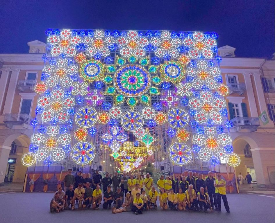 Festa poi, per i volontari e per tutto il team che ha lavorato per l'evento, davanti al portale illuminato.