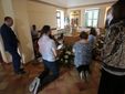 Dopo la Comunione e i canti, la bara di Madre Elvira è stata aspersa con l'acqua benedetta e incensata da Monsignor Bodo: "Signore, apri a lei le porte del Paradiso e concedi a noi di consolarci a vicenda con le parole della Fede finche saremo tutti riuniti in Cristo".