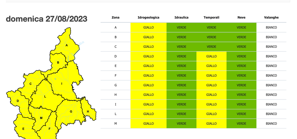 Resta intanto in vigore l’allerta gialla oggi su tutto il Piemonte e arancione domani sulle pianure e sui bacini di Belbo, Bormida e Orba.