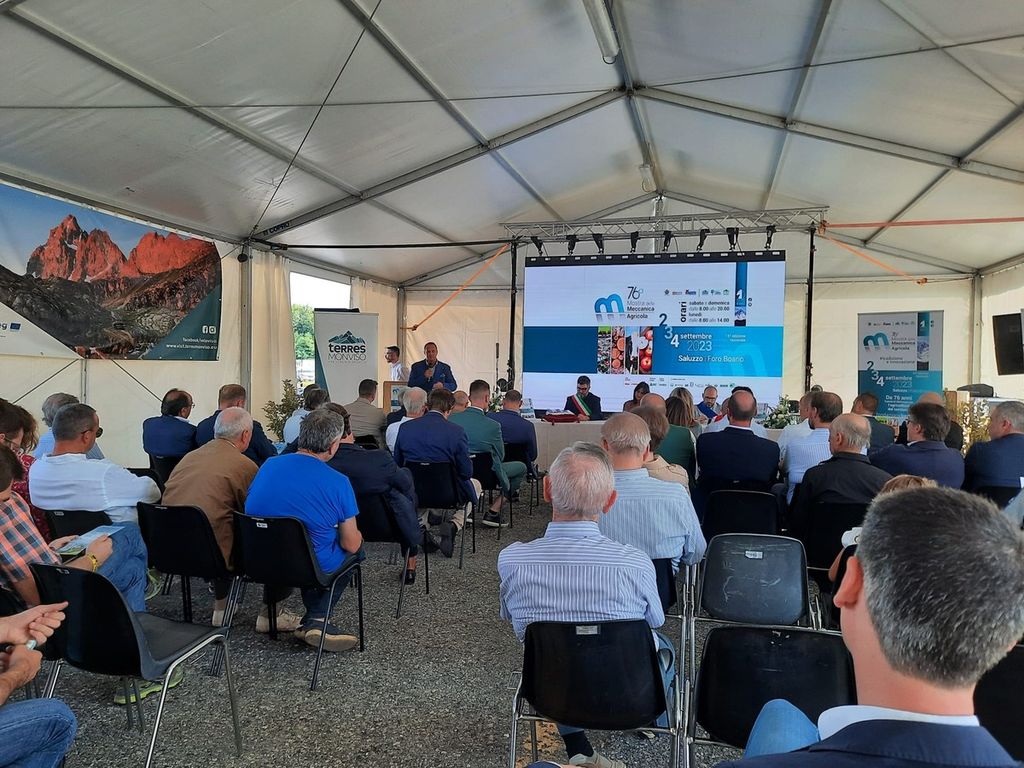Negli interventi di Carlotta Giordano, presidente Fondazione Bertoni, Luca Robaldo ( presidente della Granda), Paolo Demarchi consigliere regionale, Giacomo Ballari presidente Fondazione Agrion, Enrico Nada presidente Coldiretti Cuneo, Enrico Allasia di Confagricoltura, Roberto Colombero presidente Uncem Piemonte, Gabriele Carenini presidente CIA Agricoltore Piemonte, Luca Crosetto di Confartigianato Cuneo ed Elia Dalmasso presidente Ara Piemonte, sottolineate le valenze della manifestazione, una centralità del settore, le sfide da affrontare: dal clima all’innovazione meccanica, annunciate nuove sinergie e progetti.