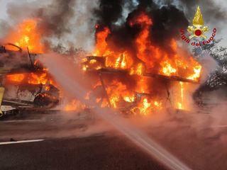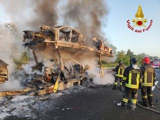 Bisarca in fiamme sulla Torino-Savona: traffico in tilt all'altezza di Carmagnola